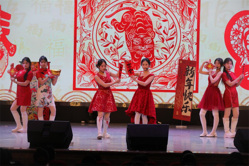汇演在甘肃工业职业技术大学康养学院带来的《闹新春》中热烈开场。旋律如春潮欢腾,舞姿似百花盛放,顷刻点燃全场,浓浓的年节喜悦扑面而来,为演出奠定了欢腾的基调。