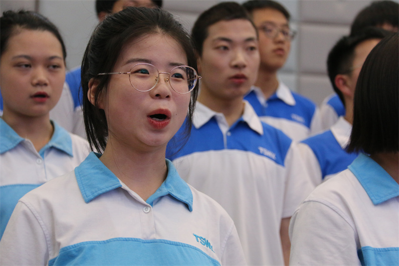 大合唱比赛自4月启动以来,全级28个班级在各班主任老师的悉心指导下,人人参与,利用课余时间精心准备,积极排练。为增强活动的参与度和影响度,加强学生和专业老师的沟通交流,教学相长,专业老师们也应邀参与到大合唱排练当中。指导老师提出了宝贵意见,协助班主任和同学们一起精心练习。经过一个月的辛苦排练,同学们带着自信,精神饱满地站上了舞台。