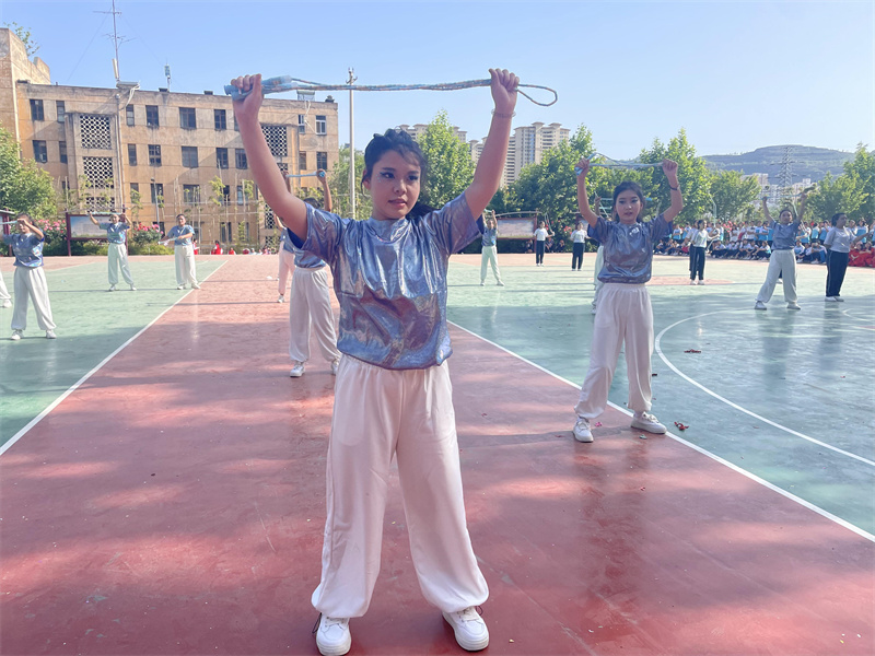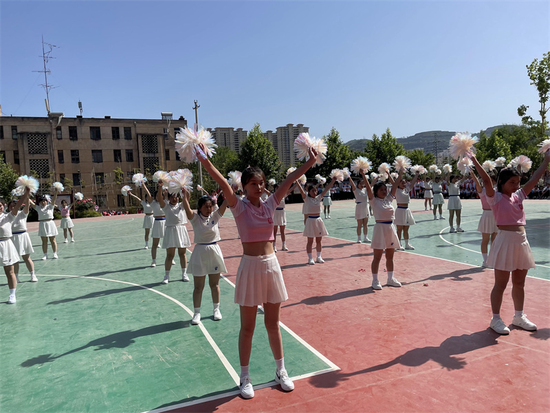 各班级参赛队伍陆续闪亮登场,青春洋溢的少年选手们朝气蓬勃自信满满,选手们步伐整齐、口号响亮,一经亮相就明媚了整个校园。音乐响起,每一位队员都洋溢着青春的活力,他们阳光自信的笑容、激情澎湃的舞步、整齐划一的动作和用心用情的编排不仅展现出新时代青春学子的精神风貌,更是引来在场同学们的阵阵惊呼和喝彩,完美地诠释了学校扎实推进素质教育的丰硕成果。