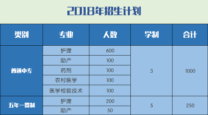 普通中专(三年) 专业有:护理 助产 药剂 医学检验技术 农村医学