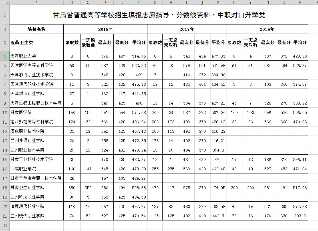 甘肃省普通高等学校招生填报志愿指导·分数线资料·中职对口升学类