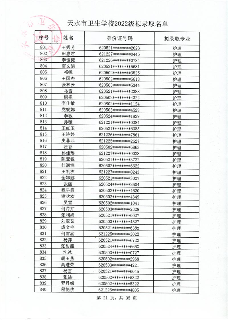 录取名单