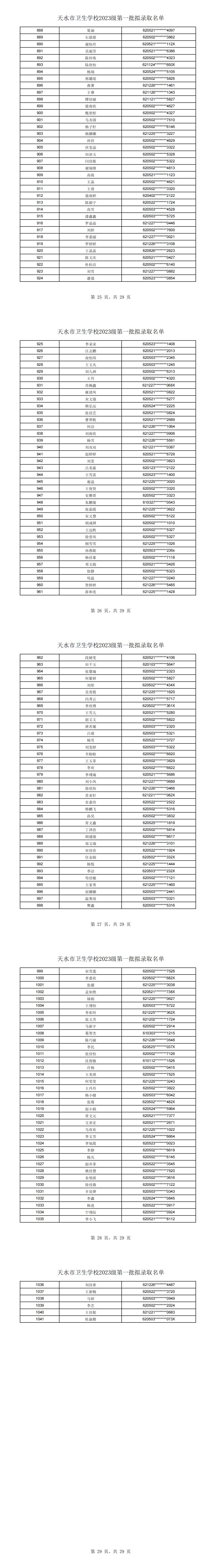 根据考生第一志愿及中考成绩,我校确定了第一批拟录取学生名单。请该批次学生于8月1-20日到我校领取录取通知书,并且凭录取通知书于8月21-22日入学注册报到。(注:已填报志愿未公布到拟录取名单的考生,请持续关注天水市卫生学校公众号,后续将公布第二批次录取名单。)