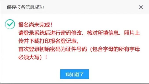 信息填报结束后,系统会自动退出,需再次登录,初始账户和密码均为考生身份证号(如身份证号最后一位为X的,则必须大写),登录成功后需修改登录密码(请牢记密码)。