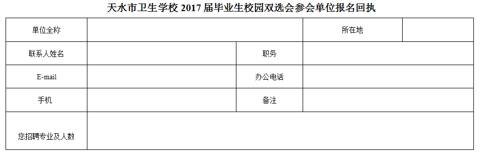 4、请用人单位于3月21日早上8:50到天水市卫生学校招聘现场报到,领取相关资料入场洽谈招聘。