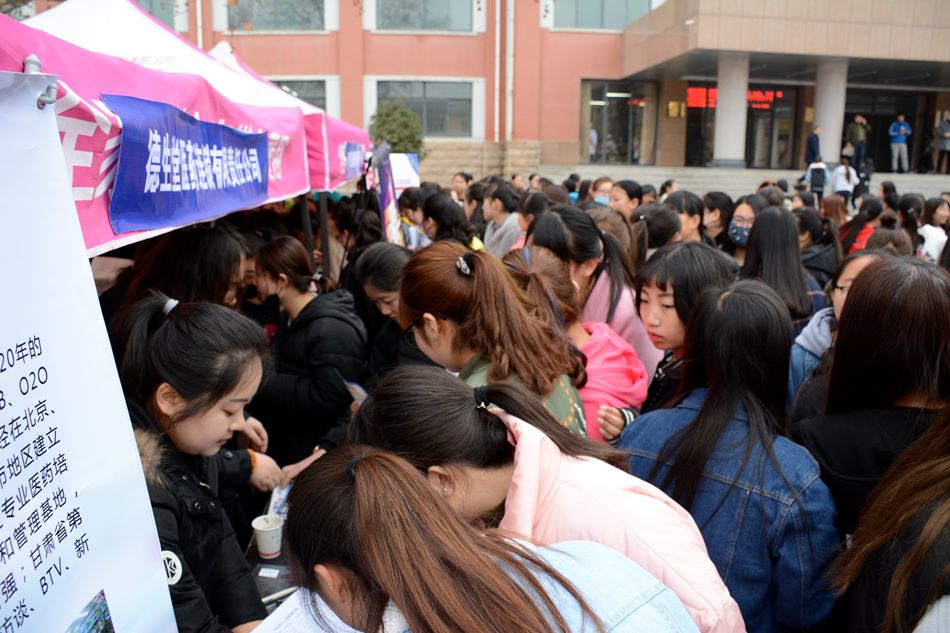 本次双选会共有高职、中专两个层次,护理、助产、药剂、医学检验技术和农村医学五个专业,总计1731名应届毕业生参加。参会的用人单位有21家,分别是:天水市第一人民医院体检中心、天水市中心血站、天水市新天坛医院、天水市仁和医院、天水市退休医师医院、天水市长控医院、天水市和平医院、魏氏骨伤医院、秦州区西十里社区卫生服务站、天水蒋氏肛肠医院、兰州惠仁堂药业有限公司、南京富国生物工程有限公司、甘肃众友健康医药连锁有限公司、金昌市德生堂医药连锁有限责任公司、天水市岐黄药业有限公司、甘肃博瑞大药房有限公司、天水男健医院、天水万义骨科康复医院、甘肃惟康医疗设备有限公司、新疆喀什英吉县医院。另有数十家单位将在后期陆续来我校招聘毕业生。