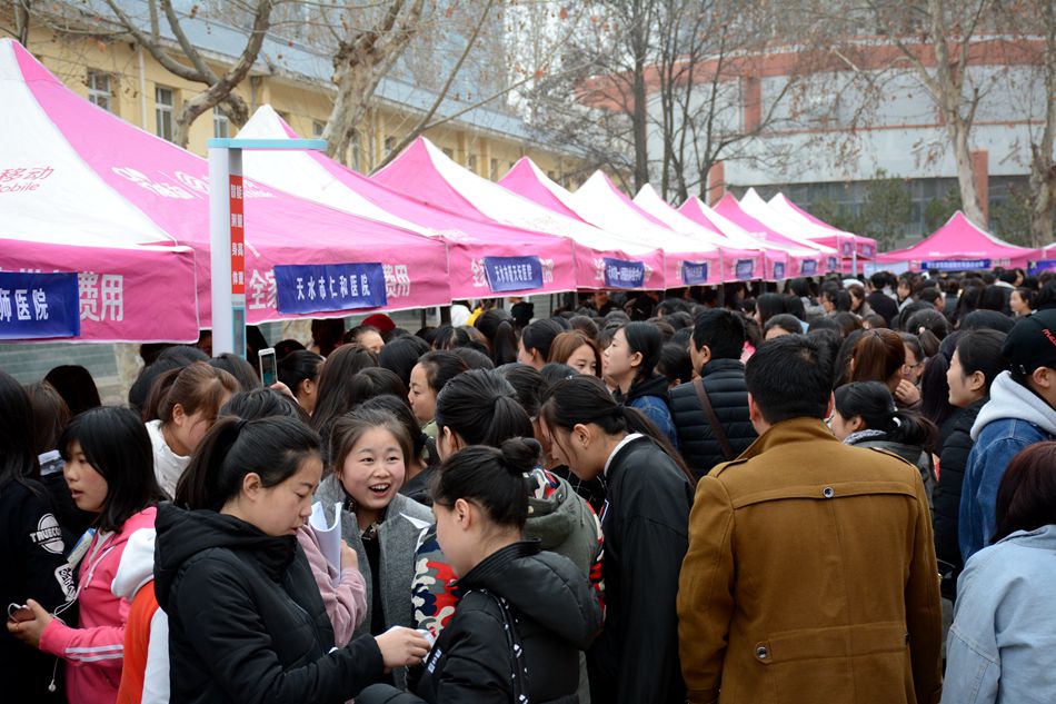 3月21日,天水市卫生学校2017年毕业生就业双选会在学校教学楼前广场上如期举行。各用人单位提供就业岗位近300个,覆盖了我校毕业生的各个专业。
