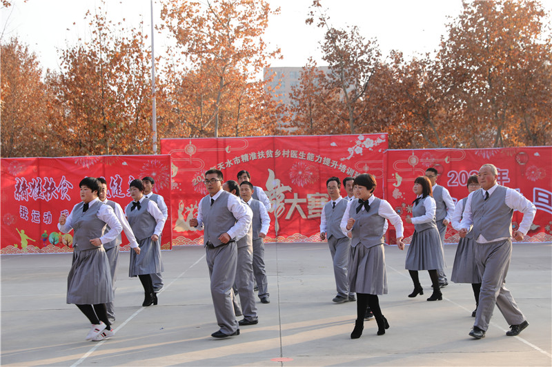 12月19日下午,我校举办了“2019年天水市乡村医生能力提升培训班”广场舞比赛。校领导、全体培训班学员及部分学生一千余人齐聚操场观看演出。