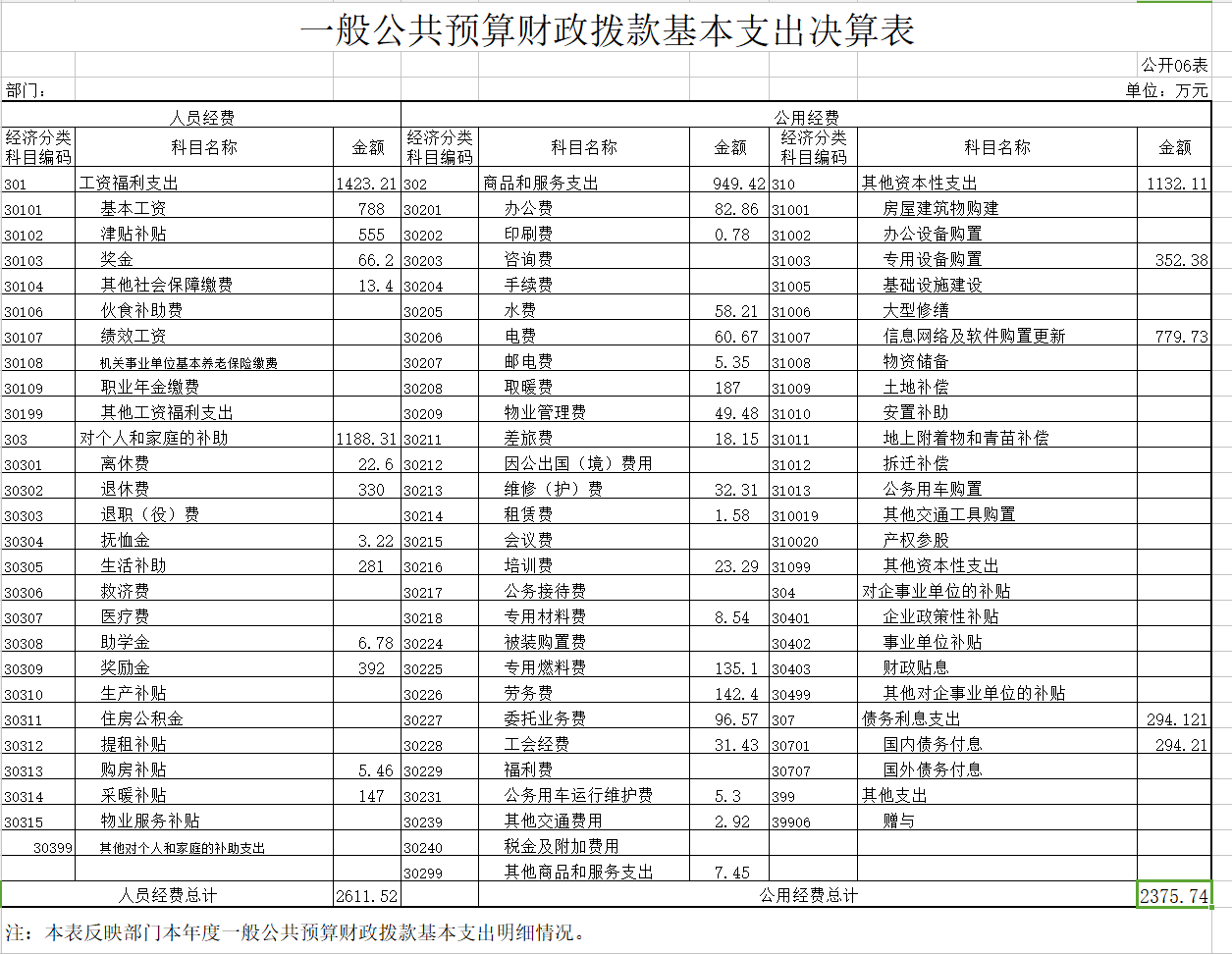 2.日常公用经费2375.74万元,主要包括:办公费、印刷费、咨询费、手续费、水费、电费、邮电费、取暖费、物业管理费、差旅费、维修(护)费、租赁费、会议费、培训费、公务接待费、专用材料费、劳务费、委托业务费、工会经费、福利费、公务用车运行维护费、其他交通费用、其他商品和服务支出、办公设备购置、信息网络及软件购置更新、其他资本性支出。