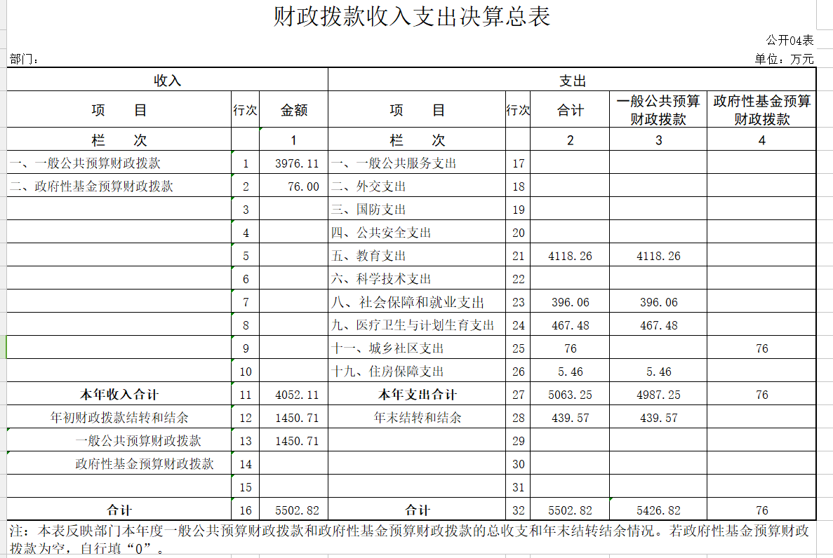 4.上年结转和结余1450.71万元,为以前年度支出预算因客观条件变化未执行完、结转到当年或以后年度按有关规定继续使用的资金,既包括财政拨款结转和结余,也包括部分事业收入、经营收入、其他收入结转和结余。