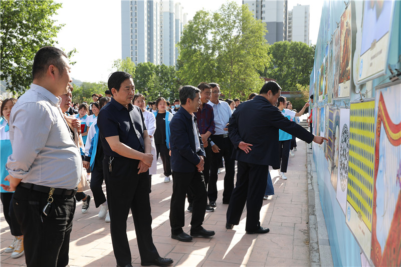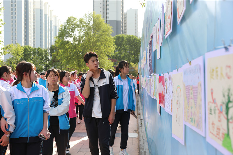 在启动仪式上,毛如君校长代表校领导作了动员讲话。他号召同学们积极踊跃参与到活动中来,明白快乐的含义;树立自信,发挥潜能;懂得谅解、尊重、感恩;拥有爱心、自信心、责任心,成为一个心理健康的人。希望同学们快乐学习,快乐生活,快乐成长!宋继凯副校长宣读了“心理健康周征画活动”获奖名单。校领导到签名墙上签字留言并参观了各个活动版块。